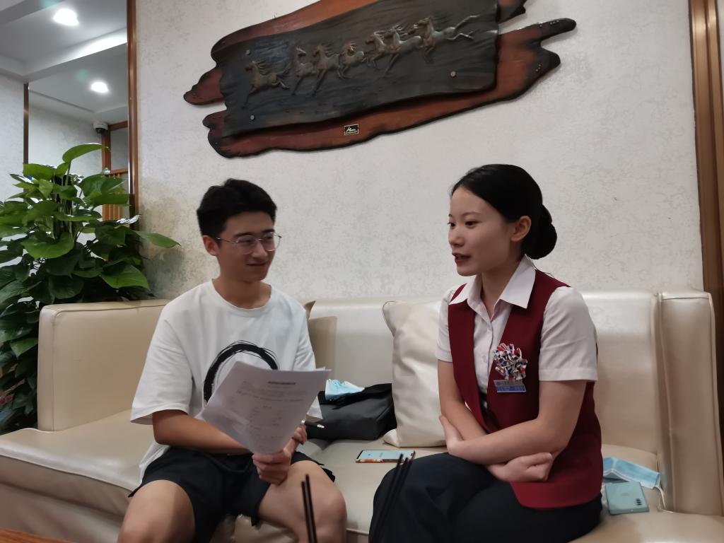 2021年8月30日下午,澳门信誉最好十大平台党委书记、副院长王建明、金融工程系主任张永鹏及就业联络员兰丽娟带领实践团队赴兴业银行重庆分行洋河路支行开展“小我融入大我 青春献给祖国”专项调查社会实践活动。兴业银行重庆分行洋河路支行行长沈兴梅对实践团的到来表示热烈欢迎,并给予大力支持。