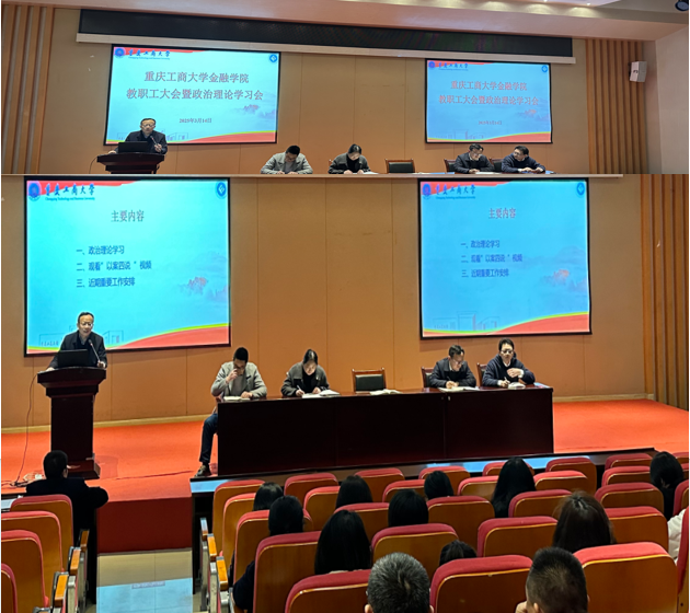 会上,党委副书记、院长王兰分享了人工智能对金融学科教育教学影响的相关观点,希望大家把握人工智能的发展趋势,充分利用人工智能促进金融学科专业的教育教学改革。副院长魏琪就近期教学工作做了安排和阐释。副院长贺渝专门讲解了《 教育部关于加强高等学校科研诚信建设和学术不端治理的指导意见》(教科信〔2024〕2号)。学院纪委书记吉杲组织开展了党风廉政教育,大家一起观看专题教育视频,并结合高校教师违反师德师风行为的典型案例开展“以案四说”教育活动,希望大家严守教育工作者的底线、不碰红线。