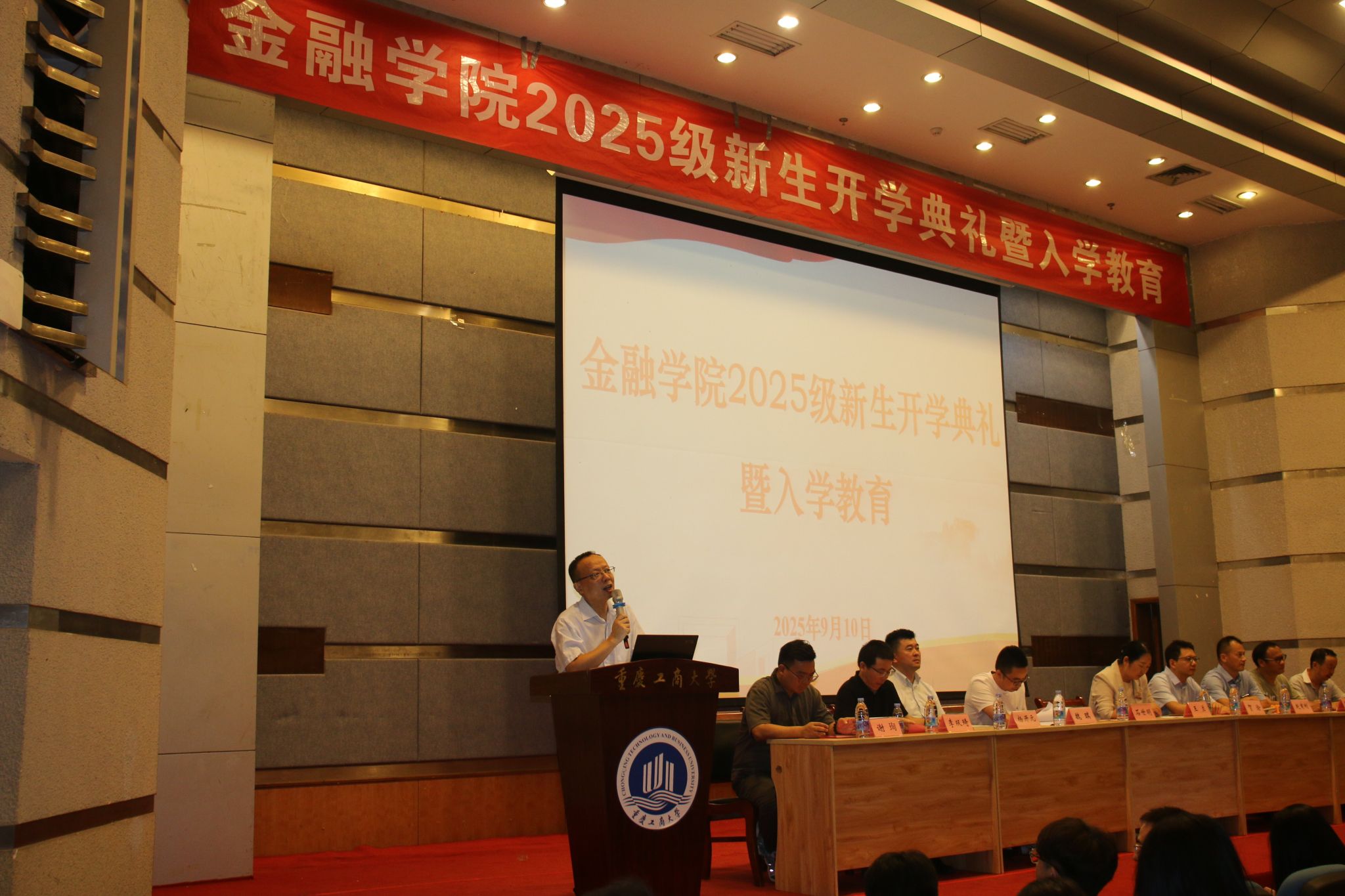 9月10日晚,澳门信誉最好十大平台在7100报告厅举行了2025级本科生新生开学典礼暨入学教育。全体新生及部分新生家长、学院全体领导及部分教师代表参加了会议。会议由党委组织委员赵甫刚主持。
