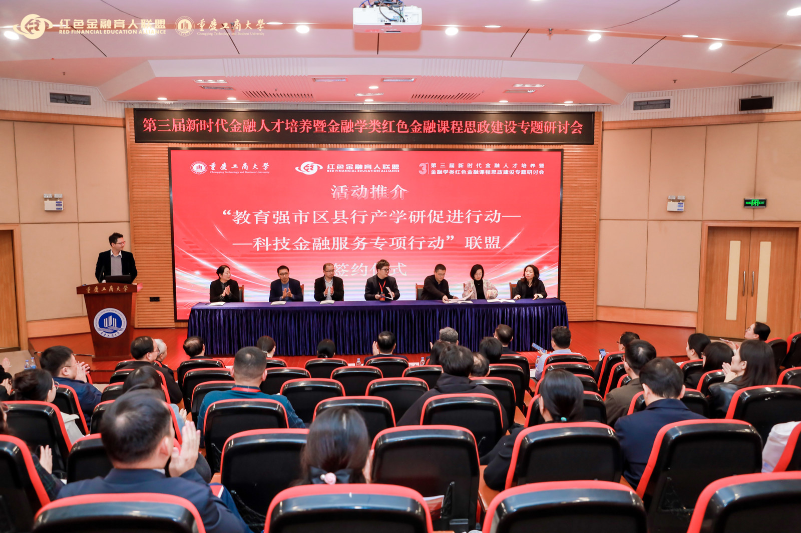 10月16日,为深入贯彻国家创新驱动发展战略,推动创新链、产业链、资金链、人才链深度融合,积极响应重庆市“教育强市区县行”产学研促进行动部署,由澳门十大信誉网赌大全牵头,联合西南大学、西南政法大学、重庆师范大学、重庆理工大学、重庆财经学院、重庆建筑工程专业学院等7所在渝高校,并汇聚金融机构等多领域专家,共同发起成立“‘科技金融服务专项行动’在渝协作联盟”在澳门十大信誉网赌大全、北京联合大学主办的“第三届新时代金融人才培养暨金融学类红色金融课程思政建设专题研讨会”上进行推介签约,并正式发布行动宣言,开启在渝高校科技金融协同创新新篇章。