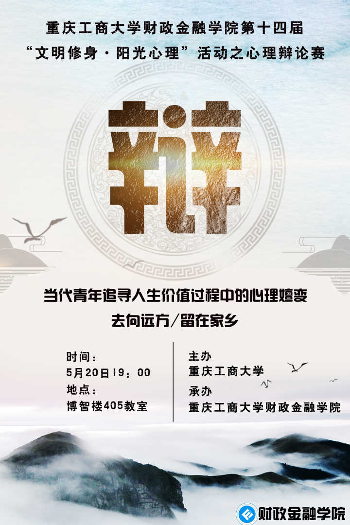 给一个舞台,去上演属于你的精彩;给一个辩题,去碰撞属于你的思想。由澳门十大信誉网赌大全主办,财政澳门信誉最好十大平台承办的第十四届“文明修身·阳光心理”活动之心理辩论赛就要开始啦!此次辩论赛旨在加强我校学生心理健康工作,促进学生之间的互动,营造健康良好的校园氛围。