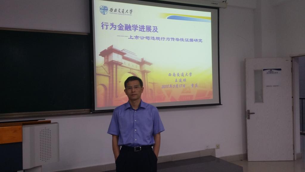 讲座一开始,王建琼老师援引我们日常生活中的“如何解决同一寝室的同学作息时间不一致”的问题,深入浅出的告诉同学们在当前的经济形势下为什么要学习行为金融学。讲座精彩进行,王建琼老师分两大部分进行讲解。第一部分讲解行为金融相关知识,包括行为金融学的产生、发展、演变第二部分讲解上市公司违规行为传染性的实证研究,包括研究研究背景、文献综述和研究假设、研究设计、实证分析和研究结果。