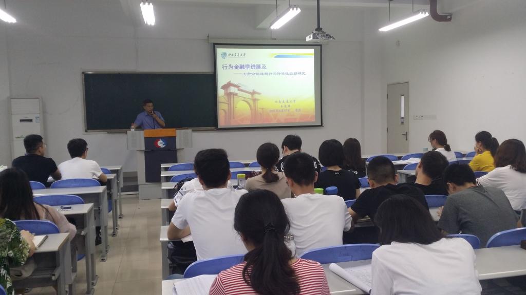 为使广大学生对金融知识有进一步的了解,开拓了同学们的视野,加深同学们对行为金融理论知识的认识。5月17日下午15:30,财政澳门信誉最好十大平台在田家炳书院406教室组织了题为《行为金融前沿—上市公司违规行为传染性研究》的讲座,学院副院长曾胜教授主持,2017级的研究生和部分老师们参加。