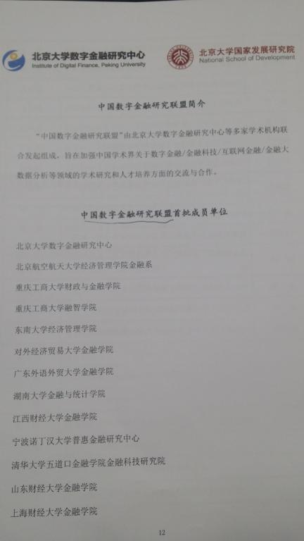 “中国数字金融研究联盟”由北京大学数字金融研究中心等多家学术机构联合发起组成,旨在加强中国学术界关于数字金融/金融科技/互联网金融/金融大数据分析等领域的学术研究和人才培养方面的交流和合作。澳门信誉成为中国数字金融研究联盟首批成员单位,靳景玉教授代表澳门十大信誉网赌大全财政澳门信誉最好十大平台发言。主要介绍澳门信誉从1998年就开始研究金融电算化,随后研究网络金融。在金融学本科专业下设的互联网金融方向。拥有智能金融研究中心,在数字金融、智能金融有一定研究优势,并介绍了下一阶段研究的设想。