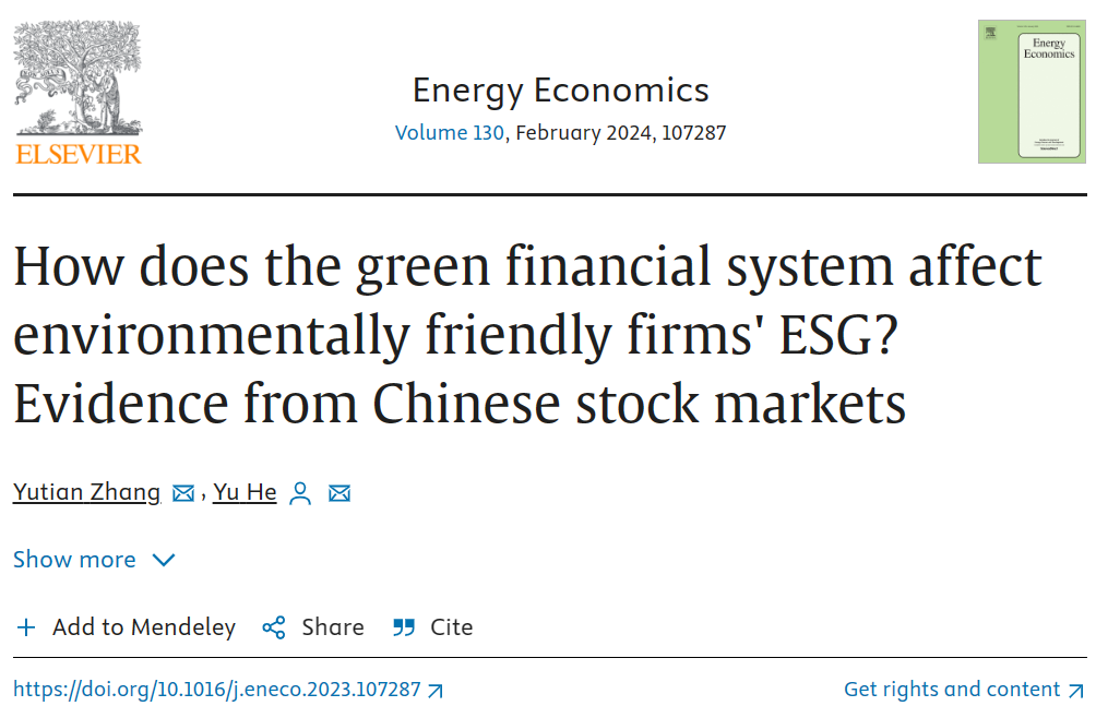 近日,澳门信誉硕士研究生张雨天在导师贺渝的指导下,为环境金融政策对ESG的影响研究提供了新的证据,并在国际学术期刊《Energy Economics》上发表了题为“How does the green financial system affect environmentally friendly firms' ESG? Evidence from Chinese stock markets”(绿色金融体系如何影响环保型企业的ESG——来自中国证券市场的证据)的学术论文(https://doi.org/10.1016/j.eneco.2023.107287)。