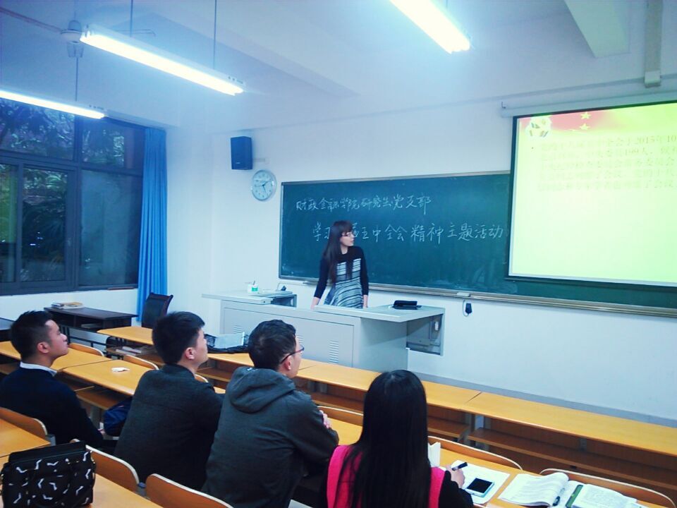 11月16日下午16点,财政澳门信誉最好十大平台研究生党支部在田家炳50311召开了学习党的十八届五中全会精神主题活动。