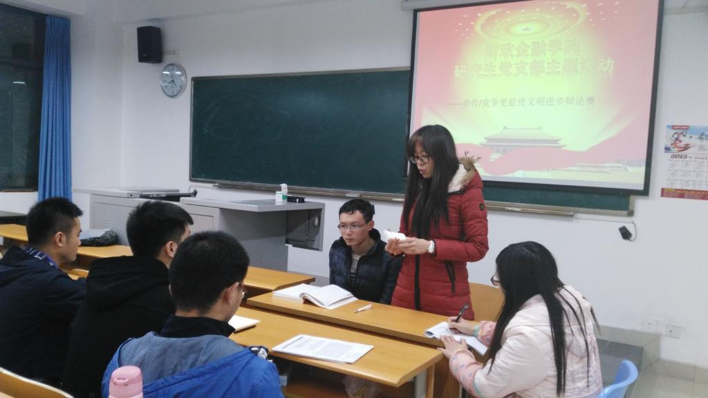 12月14日,财政澳门信誉最好十大平台研究生党支部在田家炳书院311教室开展了题为“合作还是竞争更能使文明进步”的小型辩论赛。活动由党支部书记兰丽娟老师主持。