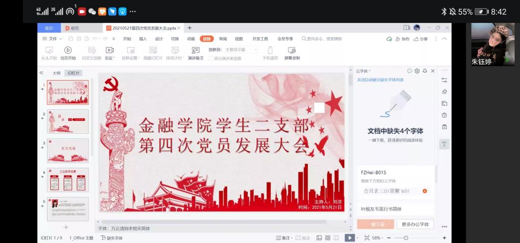 2021年5月21日周五晚上20:40,澳门十大信誉网赌大全澳门信誉最好十大平台分党委学生第二党支部于企业微信线上会议,召开了五月第四次党员发展大会。本次党员发展大会由刘洁同志主持,学生第二党支部书记乔明月、学生第二党支部正式党员、预备党员、发展对象参加了这次活动。本次党员发展大会主要讨论了三位发展对象——唐莲霞、秦子熠、杨梅发展成为预备党员的问题。