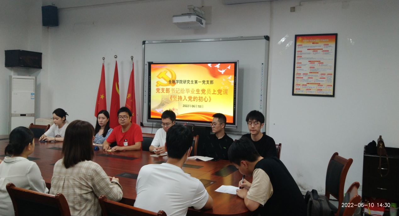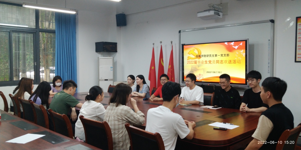2022年6月10日下午,澳门信誉最好十大平台研究生一支部开展了毕业生党员同志系列欢送活动。活动内容包括重温入党誓词、支部书记讲党课、毕业心得分享以及在校期间最后一次理论学习。活动由支部书记杨宁同志主持,支部全体党员出席。