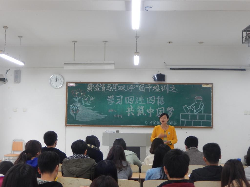 为进一步学习贯彻习近平总书记系列重要讲话精神,积极开展“四进四信”活动,财政澳门信誉最好十大平台于4月7日中午1点在07217教室开展以“学习四进四信,共筑中国梦”为主题的财金青马月“双up”团干培训会,此次培训会在同学们热情的讨论中圆满举行,财金学院分团委书记兰丽娟以及分团委学生会各部门部长参与本次活动。