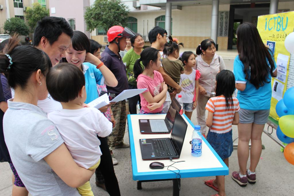 此次展示的作品涵盖了从澳门十大信誉网赌大全投资管理决策大赛中脱颖而出的创业项目和重庆创业家协会的项目。面对“ictbu”、“ imoney”、“快收”、“开普敦计划”、“诚客兼职”这些新颖的作品,当地民众聚集在各式展板前驻足观看。精心制作的视频、简明的海报以及服务团成员接地气的讲解,揭开了大学生创业项目在基层民众的神秘面纱。其中,极具便利性和环保性的“快收”,博得了在场民众的认可。“你们大学生很有想法,这台机器什么时候能到我们龙桥呢?”另外,“微商”“二手市场”等话题引起了在场民众的共鸣和热烈讨论。不少小朋友对这些新奇的事物产生了浓厚的兴趣,尽管他们对创新创业还缺乏足够的认识,但强烈的好奇心驱使他们凑到展板前,提出各种天马行空的问题,而这些问题正是小朋友们创新思维的萌芽。