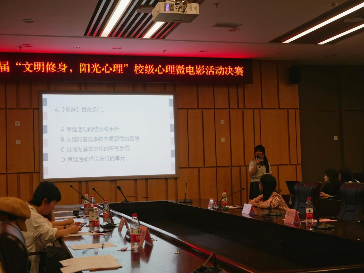 5月21日下午14:00,由学生处主办,澳门信誉最好十大平台承办、文学与新闻学院协办的第十七届“文明修身,阳光心理”校级心理微电影大赛总决赛如期于澳门十大信誉网赌大全图书馆第五会议室举行。 此次比赛的目的是为了提高大学生的心理素质及适应社会生活的能力,培养大学生良好的个性心理品质,在全校范围内共同创造出“人人关爱心灵,处处青春洋溢”“彼此互帮互助,共同快乐前进”的氛围。