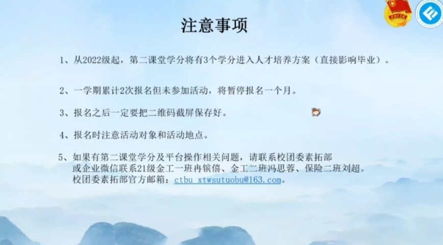 2022年11月12日下午15点,为帮助2022级同学熟悉使用“青春工商大”平台,知晓关于素拓分的获取方法和相关要求,澳门信誉最好十大平台分团委社会实践部以线上直播的方式为同学们开展“青春工商大”平台操作培训会。
