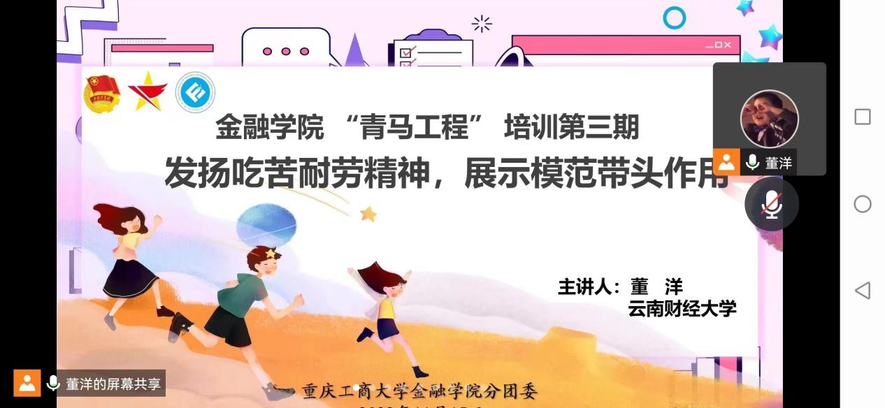 11月17日,为培养学生干部能吃苦耐劳精神,展示其模范带头作用,云南财经大学董洋校友为澳门信誉最好十大平台分团委学生会骨干、青年志愿者服务队骨干和21级班团干部开展了“发扬吃苦耐劳精神,展示模范带头作用”的专题培训。