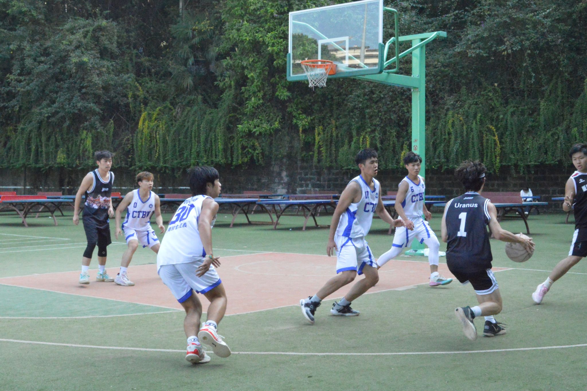 比赛开始,在紧张的氛围中,五公里拾人队与工商投金控股队展开了一场激烈的较量。场上球员们你争我夺,拼尽全力,展现了精湛的篮球技艺和顽强拼搏的精神风貌。场外观众高声呐喊,为球员加油助威,而火辣的阳光更为比赛增添了一丝焦灼。随着裁判一声哨响,喝彩声冲遍整个球场。经过不懈的努力,五公里拾人队在比赛中发挥出色,凭借默契的团队配合和出色的个人表现,最终战胜工商投金控股队,荣膺冠军。彼时,吃个桃桃队和大四联队的比赛也是进行得如火如荼,展开了激烈的对决。在经过一番紧张的角逐后,吃个桃桃队脱颖而出,战胜大四联队获得季军。