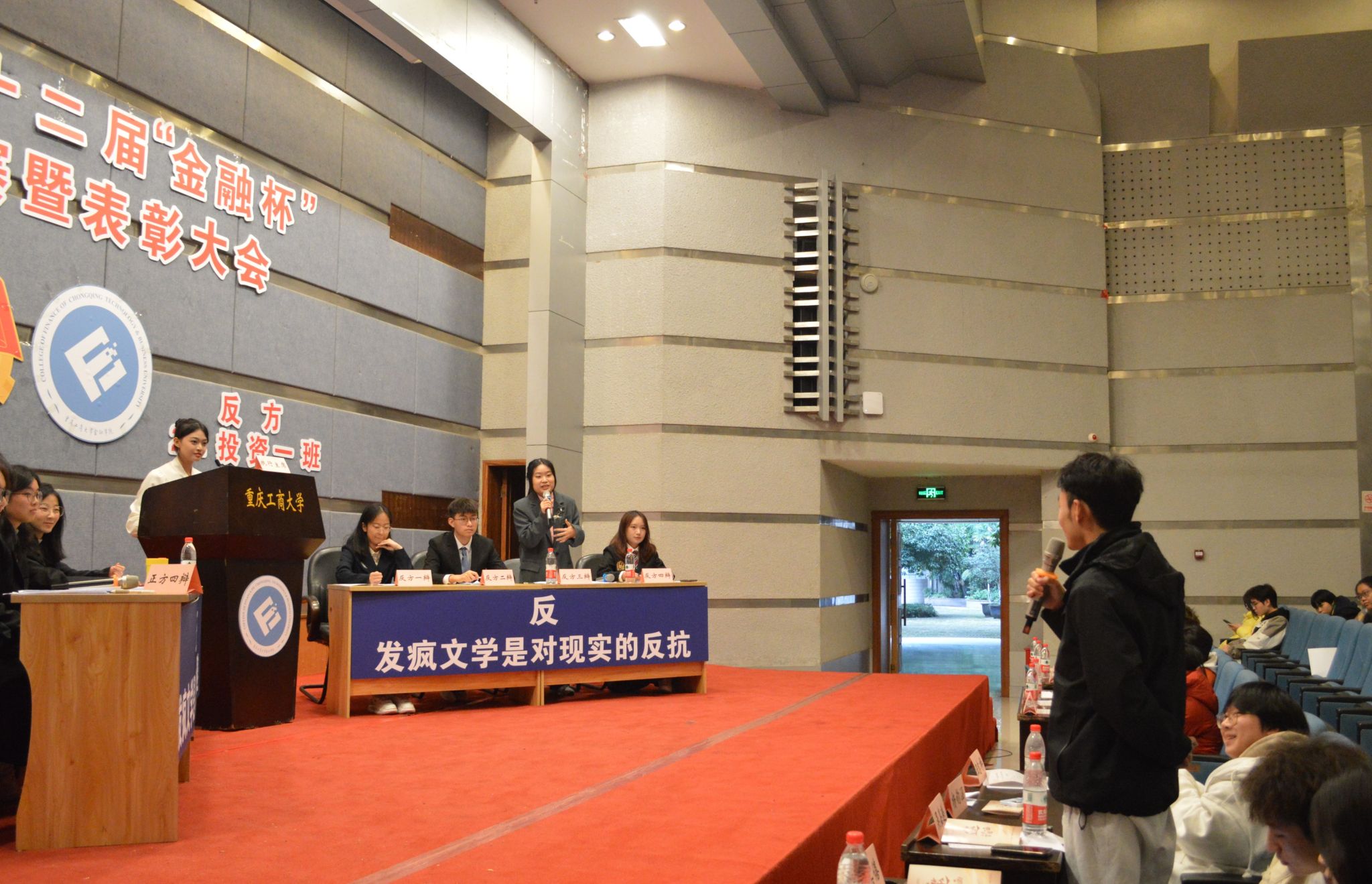 为了增强观众体验感,澳门信誉最好十大平台2023级辩论队为大家带来了以“发疯文学是对现实的逃避还是对现实的反抗”为辩题的辩论表演赛,同样精彩绝伦,引得观众拍手叫好!最后,大会对优秀辩手和获奖队伍给予表彰并颁发奖状。