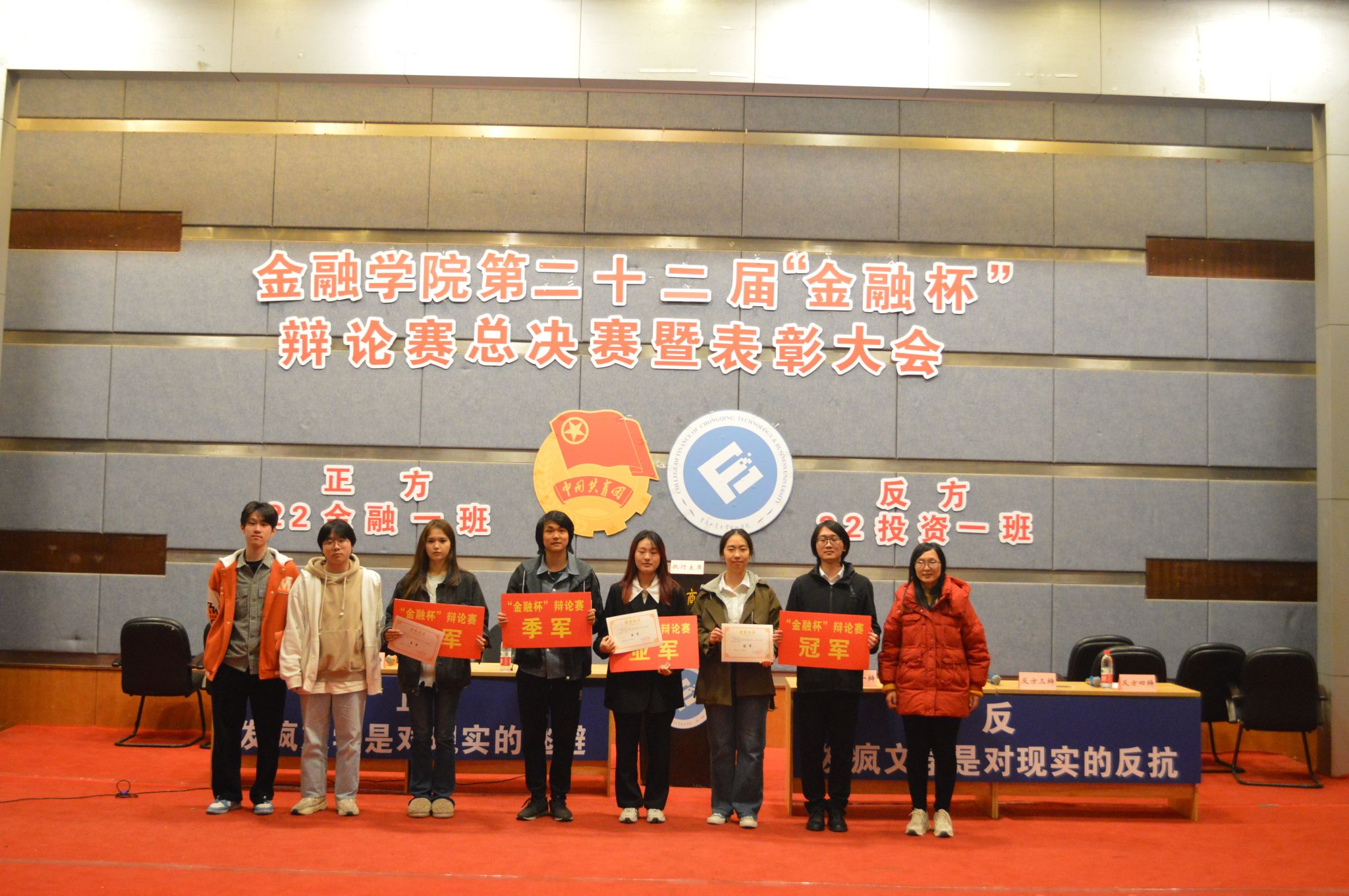 2023年12月2日下午,澳门信誉最好十大平台第二十二届“金融杯”辩论赛总决赛暨表彰大会在博智楼7100报告厅顺利举行。澳门信誉最好十大平台学工办主任、分团委书记兰丽娟老师出席了本次活动。经过激烈的角逐,22金融一班和22投资一班成功突出重围来到总决赛的现场。