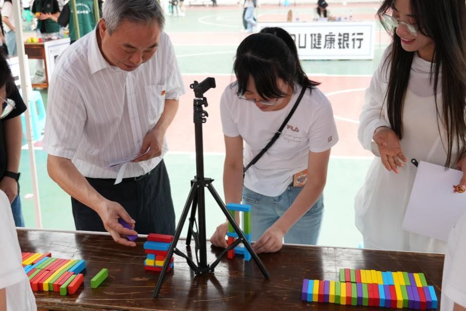 活动在投资系老师的专业指导下模拟银行业务形式,设置储蓄、借贷、投资等多个窗口,每个窗口都结合了不同学生社团的特色活动。在储蓄窗口,同学们将“坏心情”填在储蓄单上存进银行实现情绪释放;在借贷窗口,魔方社、汉服社、金融证券协会、瀚轩棋社、十字手工社、计算机协会等多个学生社团设计了情绪光谱、华服织梦、顶币承压、对奕愉情、专注点钞等各种心理闯关小游戏,助力学生贷出自信、美丽、诚信、睿智、技能、专注等健康心理品质勋章,在趣味中学会情绪管理与心理调适;在投资理财窗口,同学们通过答题、绘制心情 K 线图、模拟股票交易等活动,在运用金融知识的同时,关注自身情绪波动。