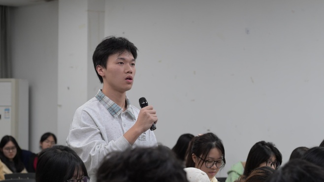 影片放映结束后,活动进入深度交流环节。主持人围绕影片内容,提出了“最令你触动的片段或台词”以及“从中学到了哪些沟通与陪伴技巧”等开放式问题,引导同学们积极分享观影感悟。在轻松愉快的交流中,同学们畅所欲言,既有对影片情节的深入剖析,也有对现实生活的联系思考。