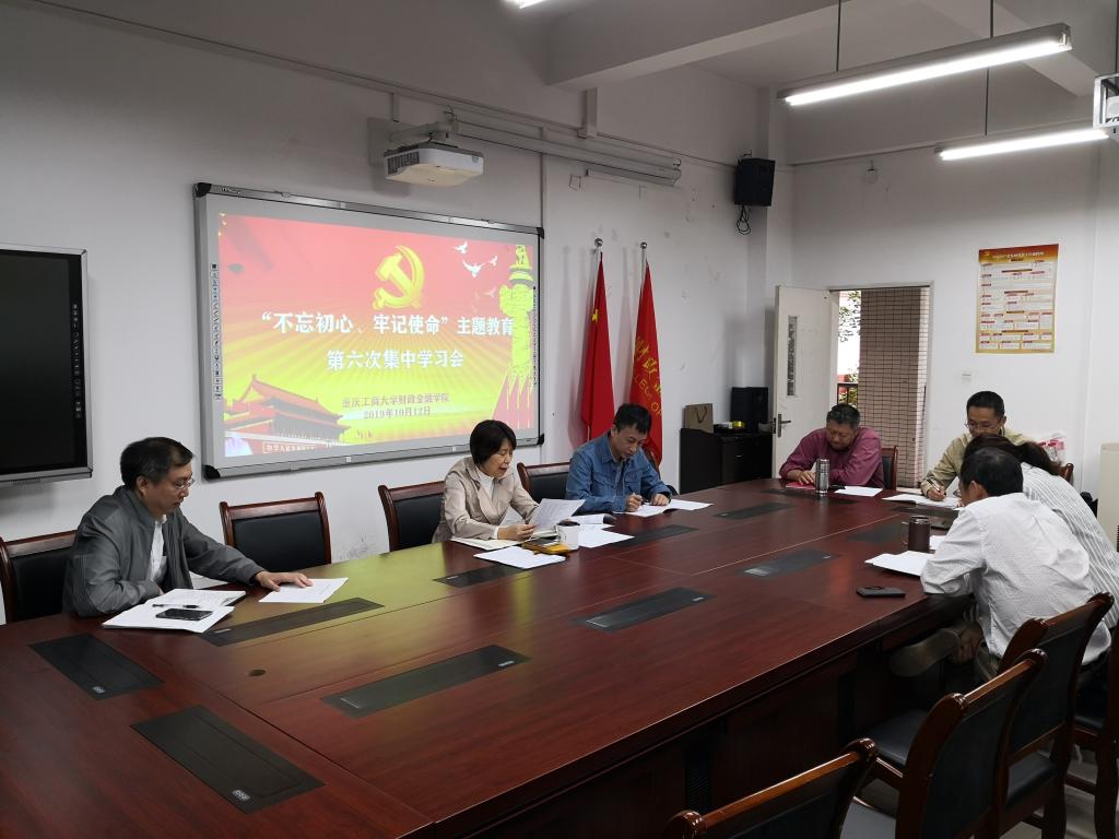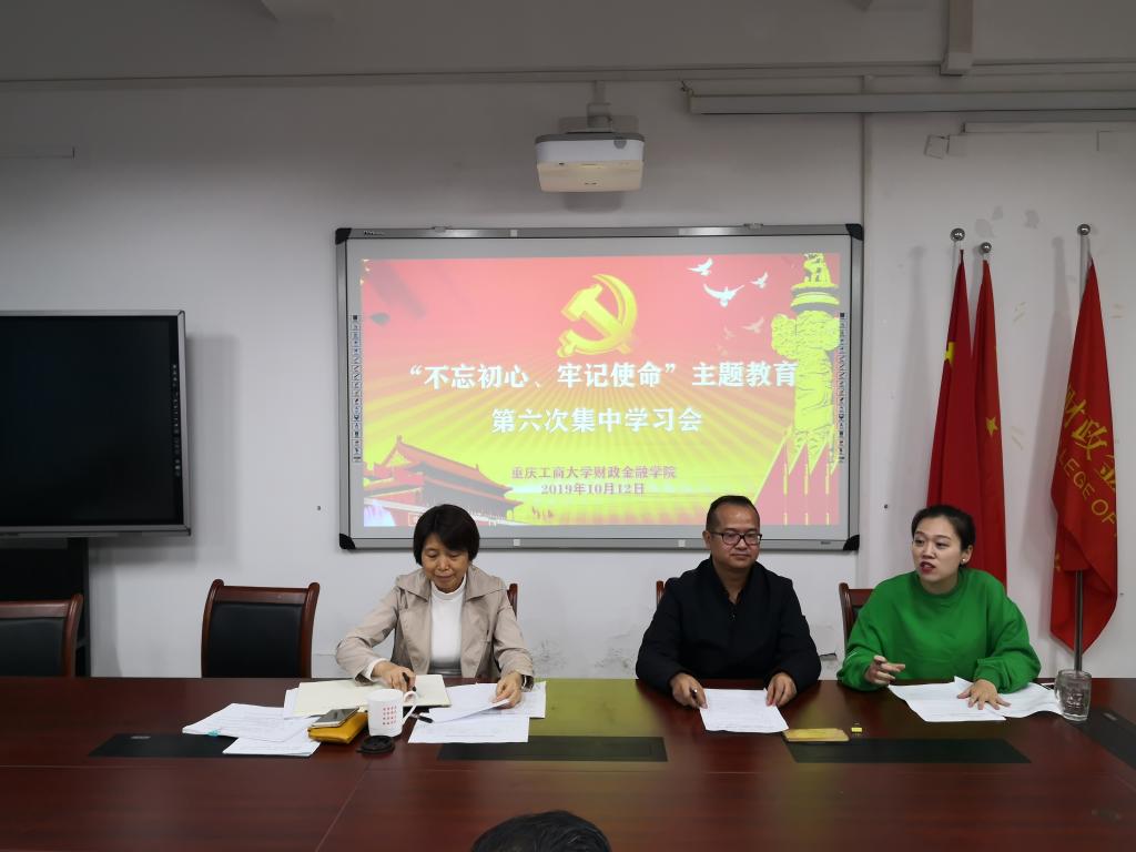 按照学校“不忘初心、牢记使命”主题教育领导小组近期工作安排,结合学院党委“不忘初心、牢记使命”主题教育工作计划,10月12日,财政澳门信誉最好十大平台召开了“不忘初心、牢记使命”主题教育第六次集中学习会,学院领导班子全体成员和各支部书记参加了学习。会议由院党委书记杨萍主持。