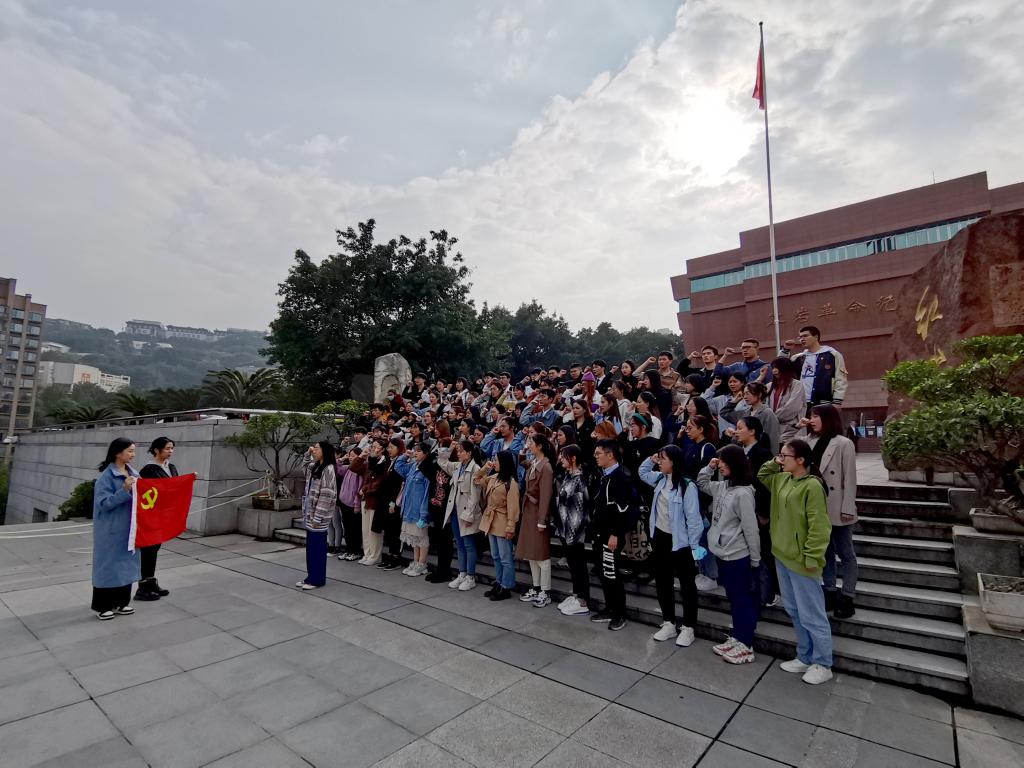 为了深入贯彻习近平总书记“七一”重要讲话精神,扎实开展党史教育学习活动,2021年10月29日下午,澳门信誉最好十大平台党委组织新发展的80名学生党员到红岩革命纪念馆开展主题为“传承红岩精神、走好新的征程”的党性教育实践锤炼活动。活动由澳门信誉最好十大平台学生一支部书记袁霄、学生三支部书记张燕带队。