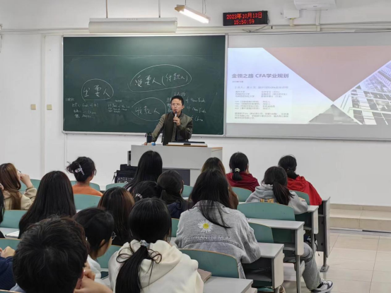 首先,老师介绍了金融行业的相关内容,帮助大家加深专业认识,坚定学习目标,针对高中与大学的学习生活的差别做了简单的分析。然后,老师从时间规划、课程设置、以及知识体系等方面,为大家全面解析了大学四年的学习内容、CFA的课程学习与考研和出国留学相辅相成的关系以及在每个阶段应该去努力的方向。最后,老师着重给大家强调了需要注重的学习方法,建议同学们尽早越早确定自己的奋斗目标,在国内就业难度不断加深的情况下,老师更是鼓励新生及早为考研、出国留学做打算,明确自己努力的方向,争取在大学四年高效率地通过CFA考试及研究生入学考试。