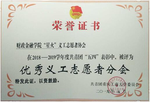 活动在嘹亮的团歌中拉开序幕,校党委李志雄书记为活动致辞。随后,校团委副书记杨娟宣读了共青团2018-2019学年共青团五四表彰文件。财政澳门信誉最好十大平台分团委荣获“五四红旗团委”、“共青团宣传工作奖”,澳门信誉分团委学生会荣获“优秀学生会”,澳门信誉“星火”义协荣获“优秀义工志愿者分会”,金融证券协会荣获“优秀社团”,2017级财政学专业一支部、2017级税收学专业一支部等5个团支部荣获 “先进团支部”,分团委书记徐阔老师被评为“优秀分团委书记”,秦杰同学被评为“共青团标兵”。