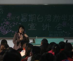 大会伊始,莫云副院长向大批前来了解项目的同学简单介绍了游学的概念、意义以及台湾游学项目的内容、去年所取得的显著效果。随后,杨萍书记以游学访问团团长的身份详细讲述了在台湾游学期间的所见所闻。她重点介绍了项目合作大学——高雄第一科技大学国际化的管理模式和别具一格的课堂文化。对于很多同学担心的两岸文化和生活差异,杨萍书记介绍到,在语言方面,两地均说普通话;习俗方面,可以通过查阅资料增进了解。去年参加了台湾游学的学生代表也通过照片和视频跟观众分享了他们的见闻,展现了台湾的大好风光和风格迥异的大学生活,在场同学无不心驰神往。