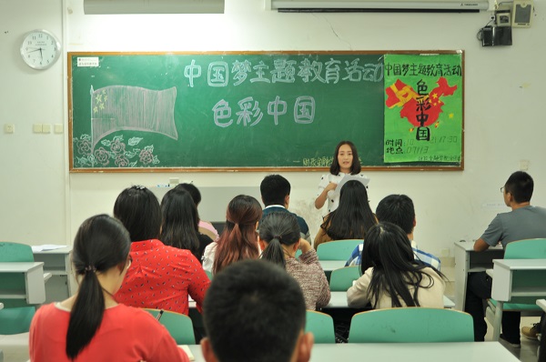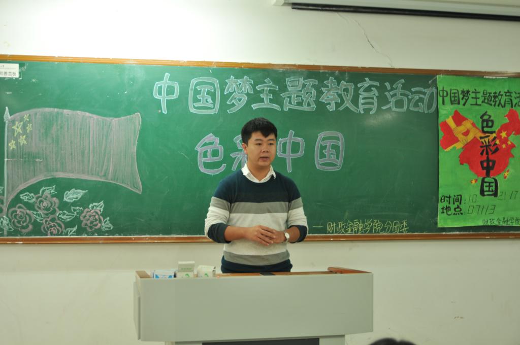 ,由财政澳门信誉最好十大平台分团委学生会主办的“中国梦”主题教育系列活动之色彩中国在博智楼113教室召开。分团委书记兰丽娟老师、学生会干部及学院各班团出席了本次活动。