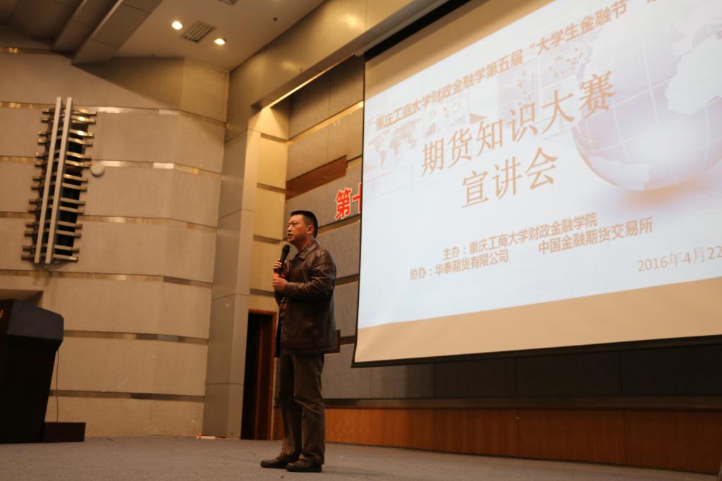 4月22日下午,财政澳门信誉最好十大平台期货知识竞赛暨第四届“中金所杯”全国大学生金融及衍生品知识竞赛宣讲会于博智楼7100开讲。澳门十大信誉网赌大全财政澳门信誉最好十大平台常务副院长莫云、党总支副书记刘代成、华泰期货华中区副总周明、言成汇资产管理有限公司投资总监沈发鹏、华泰期货代表陆彦以及财金学院学团办老师受邀出席宣讲会。
