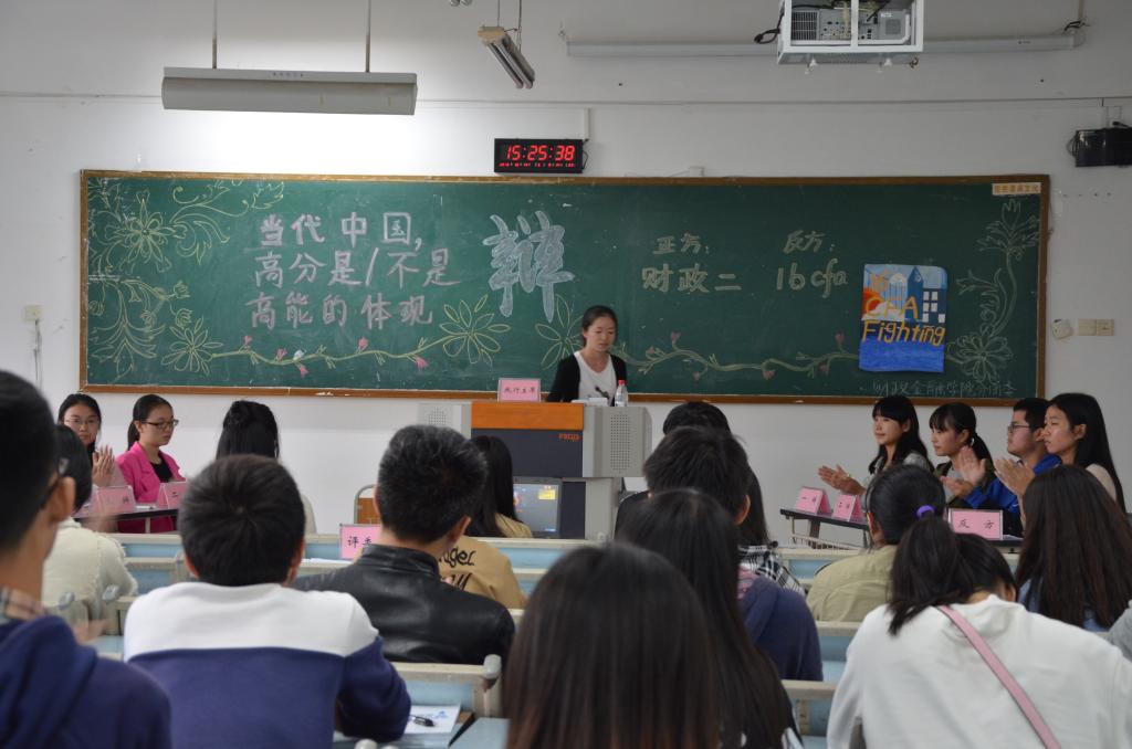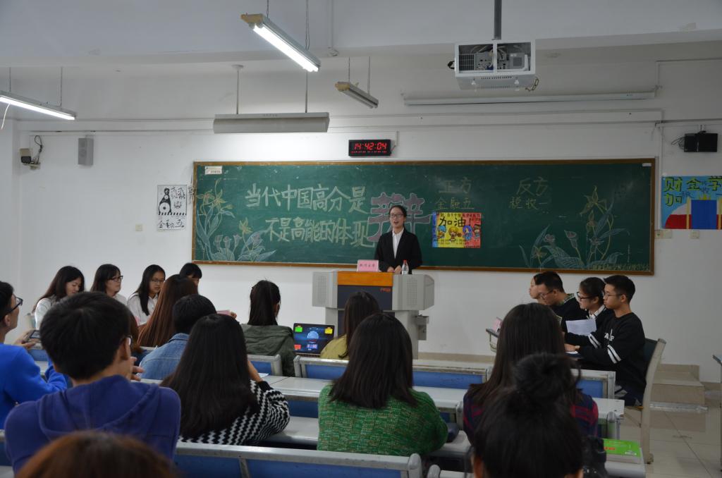 财政澳门信誉最好十大平台第十五届“财金杯”辩论赛初赛于10月14日在博智楼403-405教室举行。来自财金学院的十八支队伍展开激烈角逐,财金学院分团委学生会主席团、财金学院辩论队代表团作为评委嘉宾出席本次比赛。
