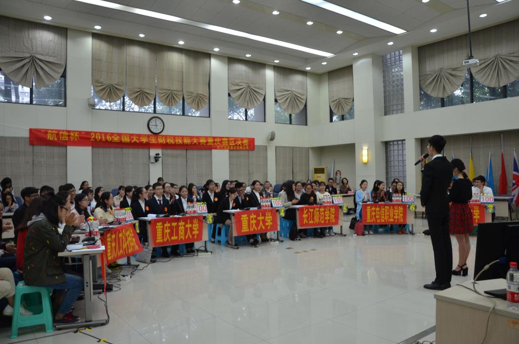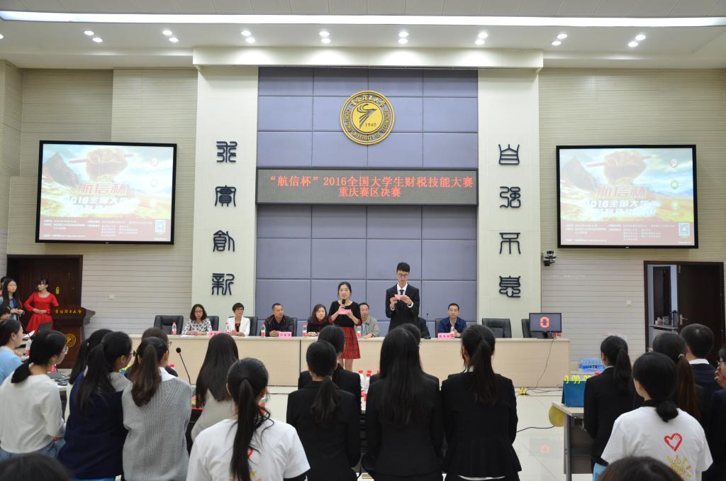 10月15日,航信杯2016全国大学生财税技能大赛重庆赛区决赛在重庆理工大学花溪校区明德楼129会议室举行。重庆理工大学会计学院党总支书记兼副院长阎建明、航天信息股份有限公司市场营销部产业化培训部经理姜宁、重庆理工大学教务处副处长张红民、航天信息重庆有限公司行业拓展事业部总经理杨忠、重庆理工大学会计学院党总支副书记李鑫、航天信息股份有限公司大区经理杨克辉、航天信息培训学校自有财税讲师张亚兵、航天信息培训学校自有防伪税控讲师李金莲出现大赛并担任评委。财政澳门信誉最好十大平台余红霞老师带队,刘润哲等六名同学代表澳门十大信誉网赌大全参赛。