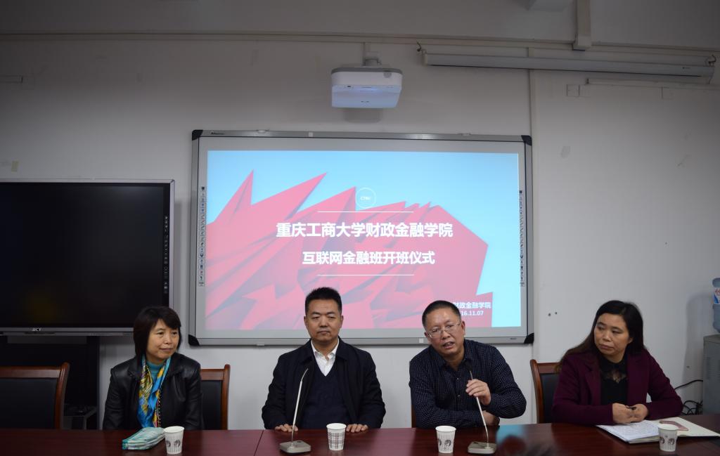 2016年11月7日下午15:30,澳门十大信誉网赌大全财政澳门信誉最好十大平台首届互联网金融班开班仪式在南岸校区田家炳313会议室举行。重庆市金融发展中心主任张洪铭、财政澳门信誉最好十大平台党总支书记杨萍、常务副院长莫云、金融系主任许世琴、分团委书记徐阔出席此次开班仪式。