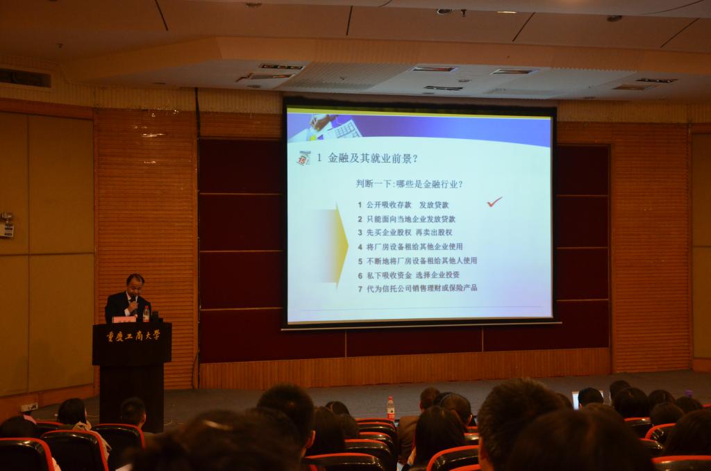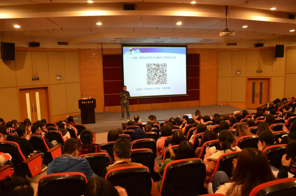 作为全国生产力协会专家委员、重庆资深金融人,熊登峰老师毫无保留地向同学们传授其在金融行业三十几年的经验与收获。他从金融行业良好的发展前景入手,结合澳门信誉学生的现状,列举生活化的实例,妙语连珠,娓娓道来。熊老师借助PPT层次分明地剖析了现代金融机构的内部结构,更深入浅出、具体详尽地向同学们介绍了简历设计、面试技巧、口才训练等方面的实用技能。同时,多次和同学们进行互动,活跃现场氛围,牢牢锁住了在场同学的目光。