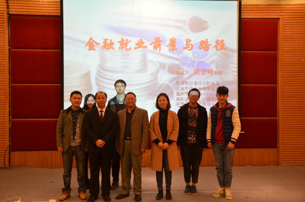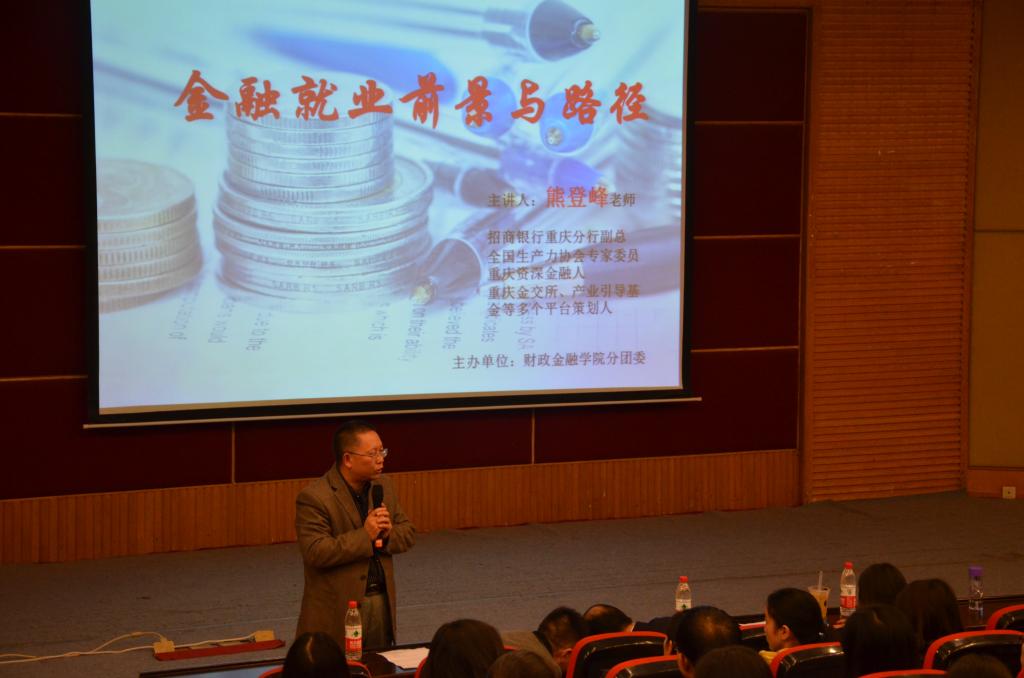 11月9日晚上七点,由财政澳门信誉最好十大平台分团委主办的“金融就业前景与路径”讲座于在我校南岸校区博智楼7200报告厅顺利举行。本次讲座特邀招商银行重庆分行副总熊登峰老师作为主讲人,学院常务副院长莫云、学生第一党支部书记文理莅临现场。