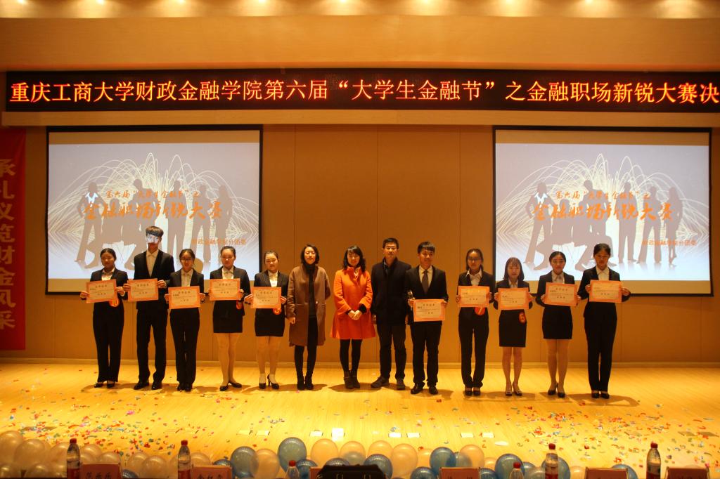 11月24日下午,财政澳门信誉最好十大平台第六届“大学生金融节”之金融职场新锐大赛于田家炳209报告厅顺利举行。财政澳门信誉最好十大平台党总支副书记刘代成、重庆银行个人银行部零售业务团队负责人胡荣珍、财政澳门信誉最好十大平台分团委书记徐阔、学生第三党支部书记范乐乐、学生第四党支部书记乔明月、学科竞赛指导老师余红霞以及各学院学生会主席团代表共同出席本次比赛。