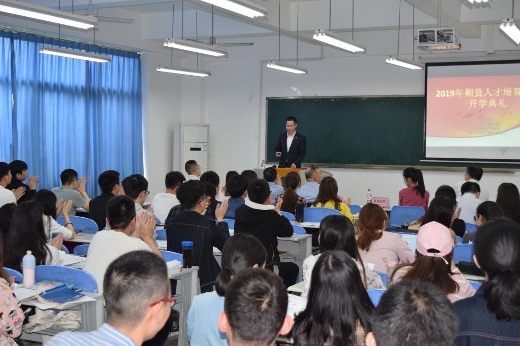 4月29日下午2:00,财政澳门信誉最好十大平台在田家炳书院50306组织了“2019年期货人才培育项目开学典礼”仪式。学院副院长曾胜教授主持,原中国期货业协会专职副会长李强、财政澳门信誉最好十大平台院长刁孝华、大连商品交易所会员部艾克白尔,重庆证监局机构二处副调研员曹雁秋、重庆市证券期货业协会秘书长王跃、重庆市证券期货业协会培训班主任朱佳,学院部分专任教师和参与此次项目的2018级金融专业研究生等100余人出席了开班典礼。仪式由学院副院长曾胜主持。