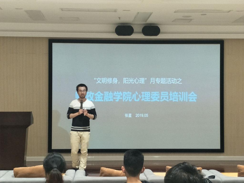 财政澳门信誉最好十大平台心理工作站成立大会暨第十五届“文明修身·阳光心理”月活动于5月5日下午14:00点在图书馆视听阅览室如期举行。学院党委黄谦副书记出席并宣布院心理工作站成立并对工作站提出具体的工作要求;学团办主任兰丽娟老师带领与会的全体心理委员学习了《澳门十大信誉网赌大全学院心理工作站实施细则》;首任站长分享了校心理工作站的培训精神和要求。活动的重点是邀请校心理健康咨询中心兼职教师张星老师向全体心理委员做了有关“如何做好心理异常察觉、初步预防及报送工作”的培训活动。张老师理论阐述与团体辅导相结合的精彩教学,让全体受训心理委员如醍醐灌顶,提高了大家开展班级心理工作的能力,增强了大家搞好班级心理工作的信心。下午16:00活动圆满结束。