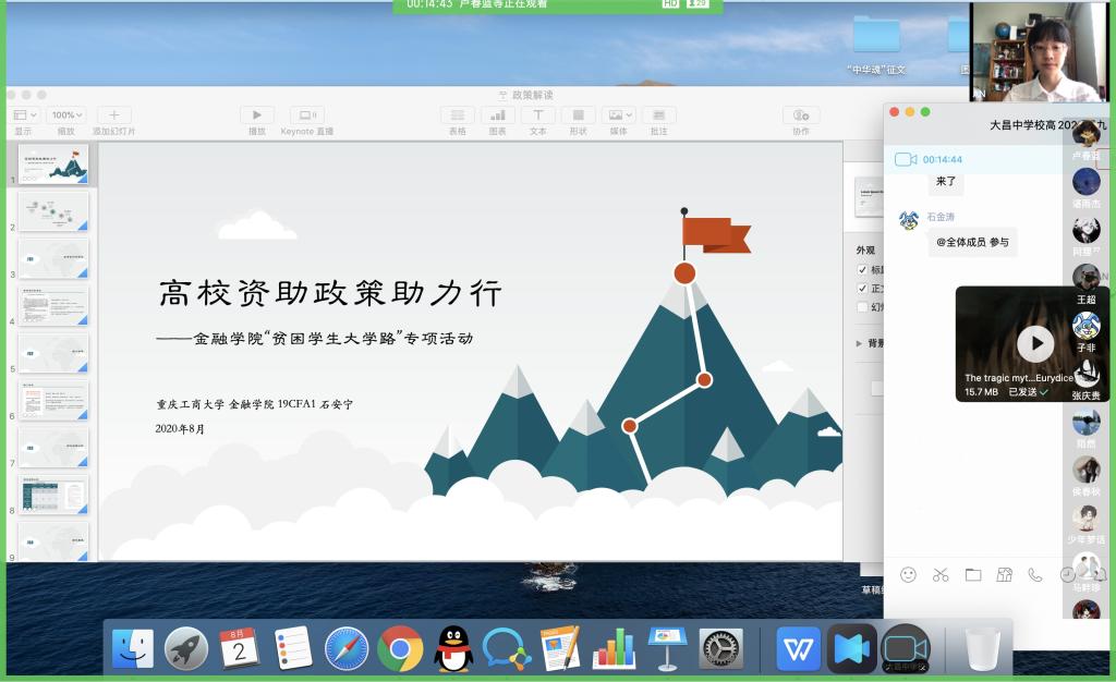 为宣讲国家脱贫攻坚政策,关注家庭经济困难学子的发展之路,2020年8月5日下午、6日上午,澳门十大信誉网赌大全澳门信誉最好十大平台“金夏归故,融惠兴乡”脱贫攻坚服务团队员石安宁、贺超分别线上连线大昌中学高2022届学生,线下邀请双江中学部分贫困毕业生,开展了“高校资助政策助力行”宣讲活动,进行贫困大学生帮扶政策的解读。
