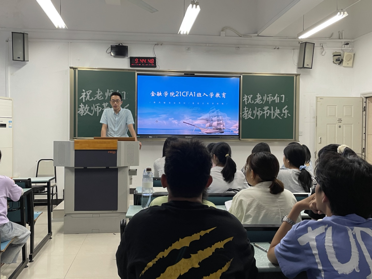 为引导大一新生合理做好大学学习生活规划,加强专业认识,更好地适应大学生活,9月10日上午9点,澳门信誉最好十大平台副院长庞楷教授、投资系系主任魏琪副教授于兰花湖校区广智楼20208教室开展了21CFA1班新生入学教育。入学教育由辅导员兰丽娟老师主持。