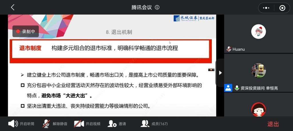 11月13日14:00,澳门信誉最好十大平台反诈骗及北交所基础知识培训会于腾讯会议顺利开展。本次活动邀请到长城证券资深投资顾问、英国金融学硕士单恒亮进行主讲。澳门信誉最好十大平台学工办副主任、分团委副书记兰丽娟老师参加了会议。