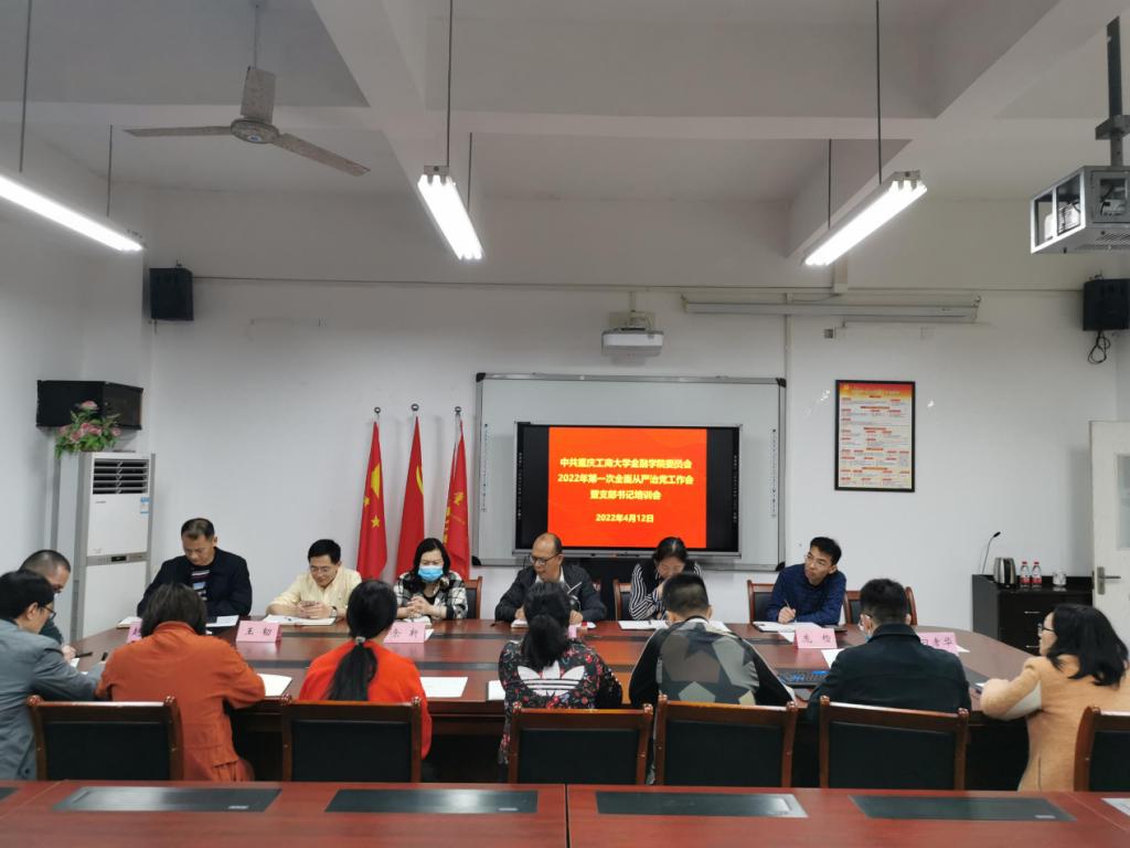 2022年4月12日上午,澳门信誉最好十大平台党委在田家炳书院317会议室召开本年度第一次全面从严治党工作会暨党支部书记培训会,学院党委书记、副书记、党委委员、专职组织员、综合办主任、学团办主任及所属各支部书记等17人参加了会议,会议由学院党委书记、副院长王建明主持。