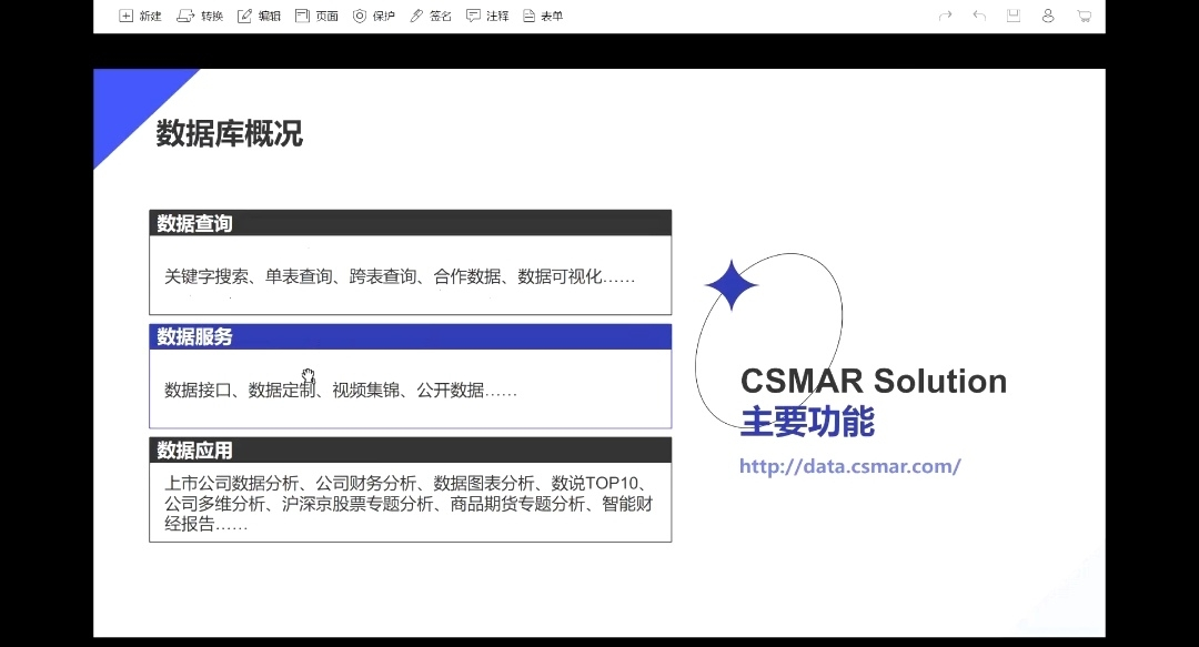 2023年10月20日上午,澳门信誉最好十大平台联合图书馆线上举行“新科研 新证实 CSMAR经济金融数据库助力创新研究”专题讲座。本次讲座邀请了CSMAR高级研究员、中国农业大学经济学博士杨曼莎主讲,旨在深入讲解CSMAR数据库的使用过程及研究案例,并鼓励同学们用数据库的力量为学业研究注入活力。