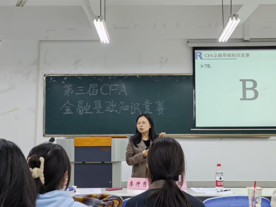 为进一步引导CFA项目班学生了解时政金融知识,培养同学们对金融、理财、投资等财经知识的兴趣,展示同学们驾驭金融知识的能力,加深对金融知识的认知,2023年12月1日上午,澳门信誉最好十大平台在田家炳书院205教室举办了第三届CFA金融基础知识竞赛,出席比赛的评委有澳门信誉最好十大平台魏琪副院长和投资系系主任李开秀老师。