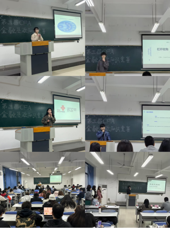 参赛选手为澳门十大信誉网赌大全金融学院CFA国际项目班2023级全体学生,共分为十个小组。比赛分风采展现和风险提速知识抢答两个环节。在PPT展示环节,各参赛队伍根据事前选好的金融主题,对某个知识或概念的理解进行介绍,采用图表、案例等各种形式展示,运用中英文进行生动的讲解。在比赛过程中,评委老师对参赛小组的展示进行了专业点评与提问,肯定了选手们对知识的掌握程度与分析能力,同时也指出了不足之处并且给出了相应的修改意见,并对同学们寄予美好的祝愿与殷切的希望。在知识抢答环节,十个小组随机抽题作答,经过激烈的比拼,最后决出了一二三等奖及优秀奖。