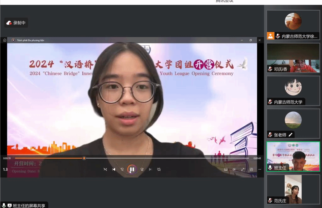 汉语桥教师代表张瑞芳老师以及三位越南学生代表也在开营仪式上发言,分别表达了老师们对学生们的期望、学生们对汉语学习和中国文化的热爱。