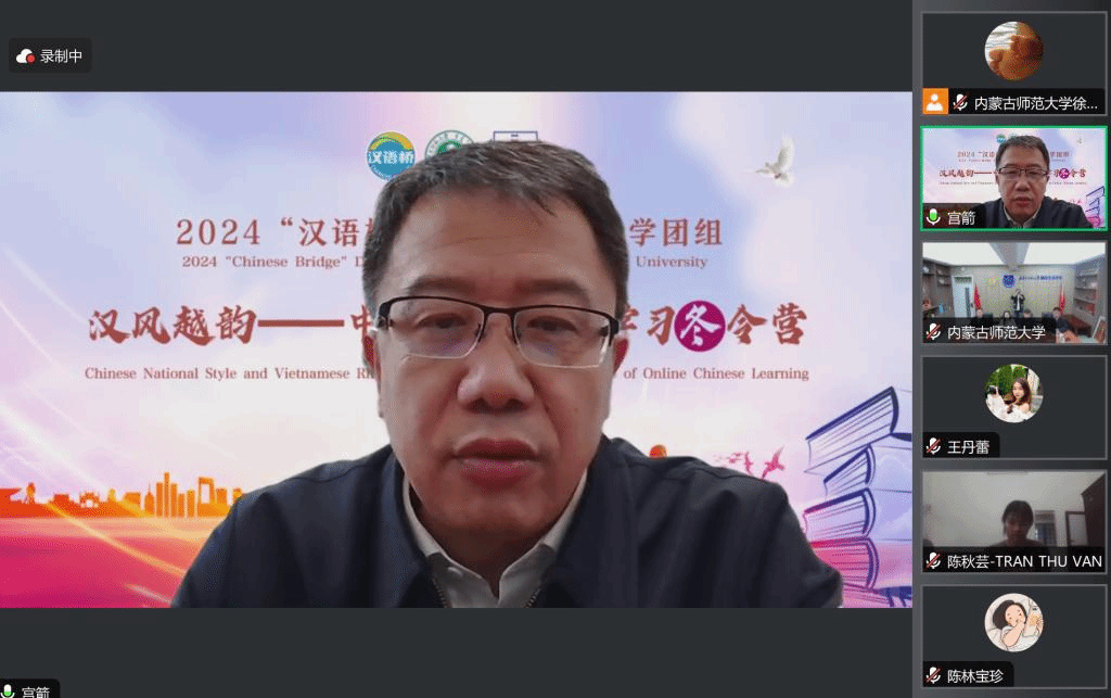 由教育部中外语言交流合作中心主办、beat365英国官方网站承办的2024年“汉语桥”线上团组交流项目“汉风越韵”主题冬令营,于北京时间2024年1月8日15时准时开营。出席开营仪式的领导有beat365英国官方网站副校长宫箭、beat365英国官方网站国际交流合作处处长苏宁巴雅尔、beat365英国官方网站院长武海燕、beat365英国官方网站副院长张磊、beat365英国官方网站副院长郑月峰。