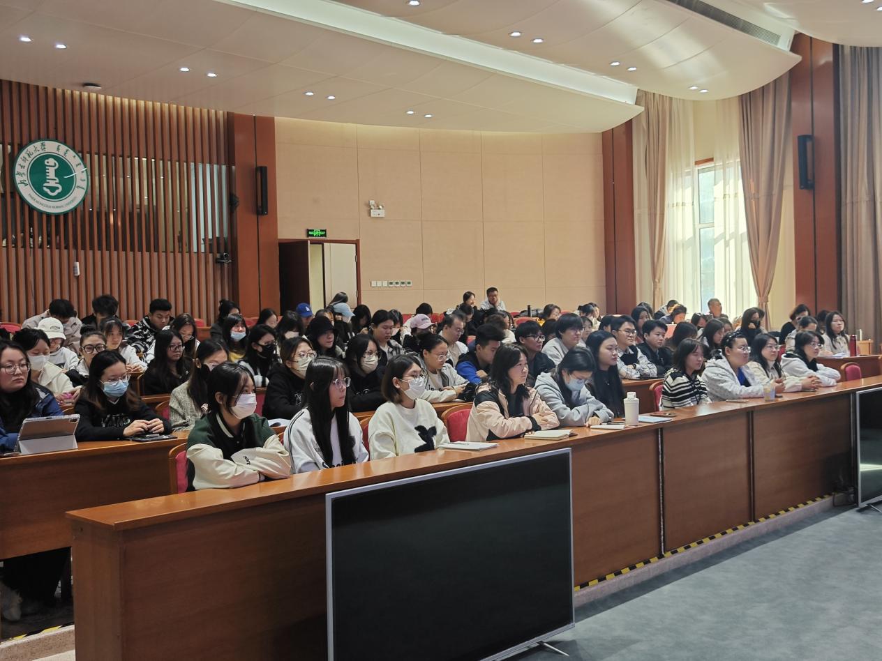 其次,学院副院长郑月锋通报2025届毕业生就业意向问卷调查情况,并开展针对性的就业指导。郑院长指出,一直以来,学院十分注重学生就业工作,全体教师密切关注升学就业动态。同时,为同学们分析了考研、考公考编、国家基层项目、出国留学等多种不同选择的利弊,并鼓励同学们努力根据自身的发展情况进行选择。