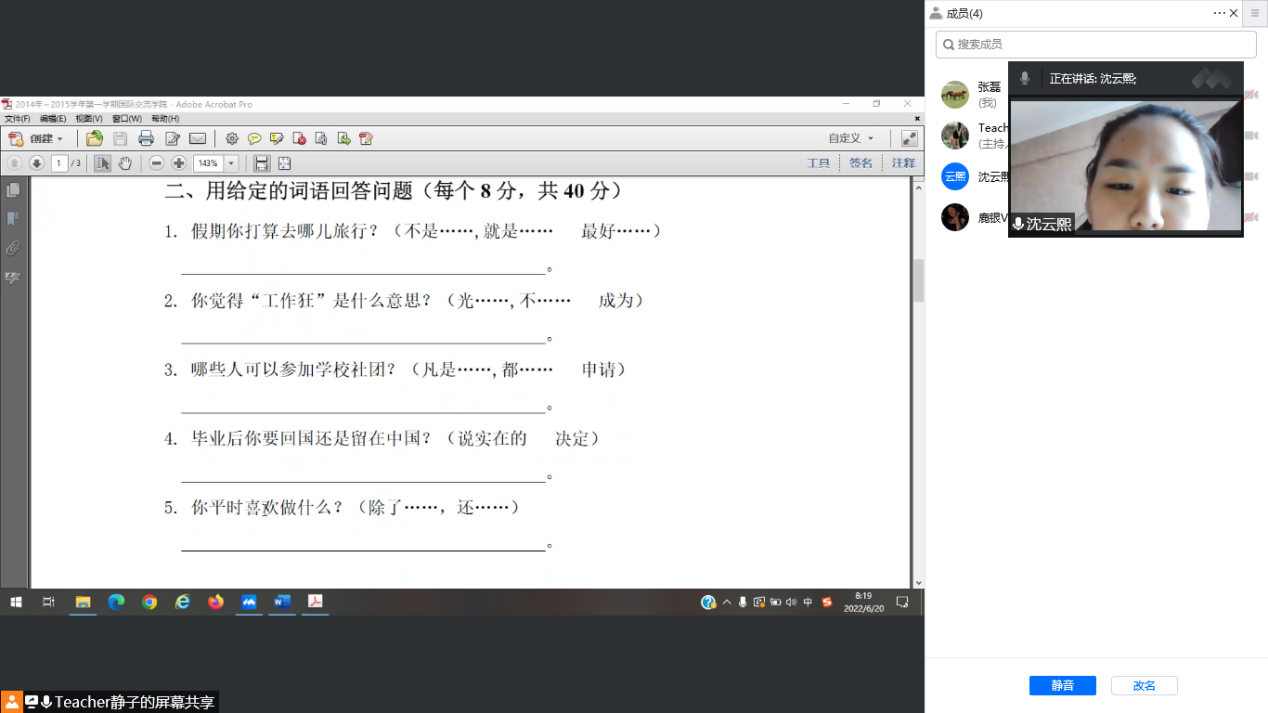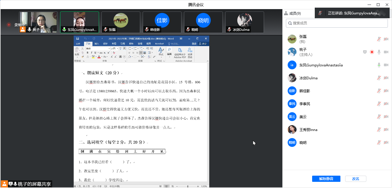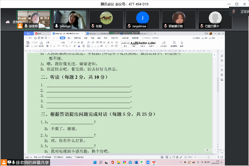 6月20日,beat365本学期期末考试拉开序幕。当日beat365共开设15门课程的考试,均顺利开考。考试平台包括腾讯会议、学习通、慕课平台等。考试形式包括视频连线、在线提交录音、电子试卷等。总体时间安排合理,教师监考方式有效,链接公布及时,巡考全覆盖。