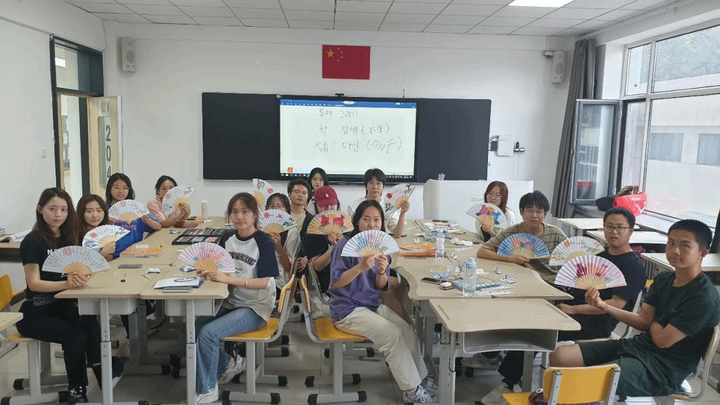 5月30日上午,韩国语教研室的金泽洙老师带领2022级朝鲜语专业全体同学,进行了韩国传统扇子绘画体验活动。